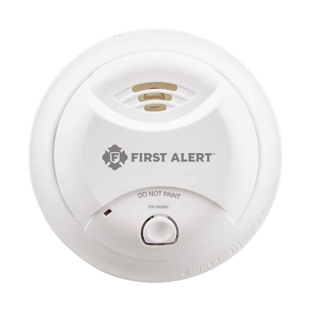 Battery powered smoke alarm with 10-Year sealed 9V lithium battery and silence feature. Includes Ionization smoke sensing technology.