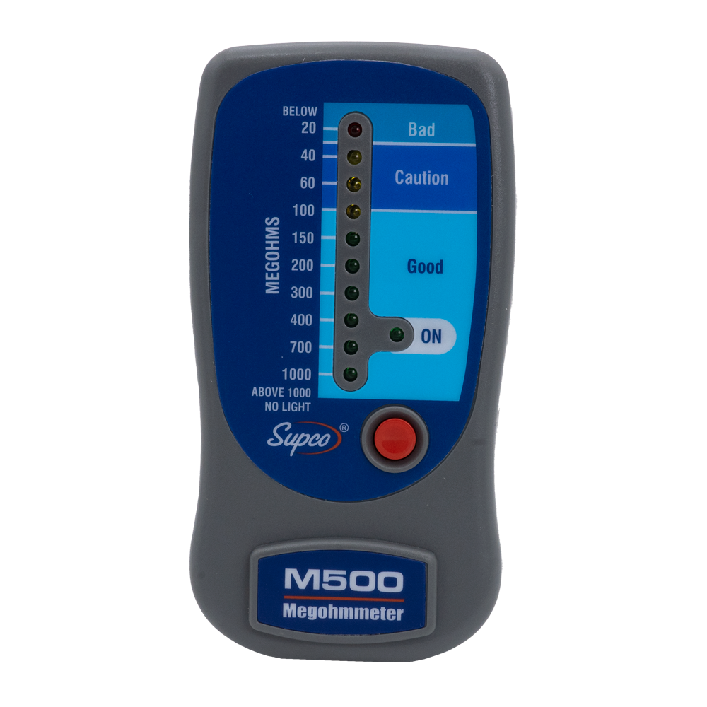 The Supco M500 LED Meogohmmeter is an inexpensive alternative to taut band (swing needle) megohmmeters, the M500 provides fast and accurate measurements to verify the condition of the insulation.
